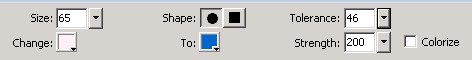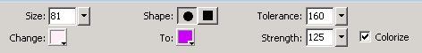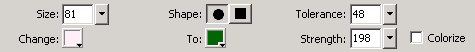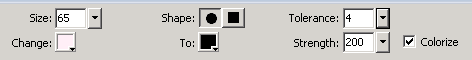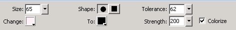 Size是涂抹工具的大小;Shape是涂抹工具的形状;Change是位图上希望替换的颜色;To是替换后的颜色。