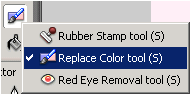首先从工具面板上选择Replace Color Tool,选择此工具后,会自动进入位图状态,相应的属性面板显示了此工具的一些参数。