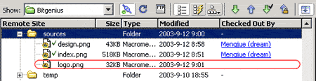 这时我们再切换到DW中,打开站点管理窗口,找到刚才编辑的文件,我们可以看到文件拥有者的信息已经显示出来了,