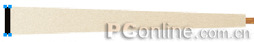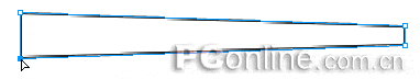 为了绘图的方便,我们先要新建一个830*880大的画布。然后用“矩形”工具画一个233*12的长条矩形,暂时用黑色加以描边。再用“细部”工具依次点选矩形左上角和左下角的两个节点,并用方向键分别向上和向下各移动8个像素,如图01。
