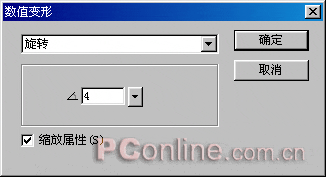 接着把这两个扇面进行水平对齐后,使用“修改—组合”选项,把两扇面进行组合。然后再复制多一份该组合,并用“修改—变形”,在“数值变形”窗口的下拉列表中选择“旋转”,角度为4,点击“确定”后退出。如图09。