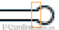再将这两个对象同时选中后,使用“修改—组合路径—联合”命令。使其形成一个组合路径。然后般用“细部”工具将图04中所示的两个节点删除。