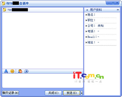 选择了QQ号码之后,点击“确定”,QQ客户端会自动弹出一个聊天模式对话框(如图3)