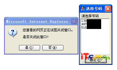 笔者在上面说过“[url][/url]中的地址才是调用QQ客户端中发送信息框启动的代码”,所以我们仅用这个地址就可以查询隐身好友了。我们在IE地址栏中输入地址:“http://wpa.qq.com/msgrd?V=1&Uin=******&Site=潇然&Menu=yes”其中“Uin=”后面填写需要查找隐身网友的QQ号;“Site=”后面可任意填写昵称。填写完毕后点击回车,如果你打开多个QQ客户端,网页会弹出两个提示,一是关闭窗口的提示,这个可选择“是”;另一个会让你选择利用哪一个QQ号来发送信息(如图2),如果你只打开一个QQ客户端,则不会出现选择号码的提示。