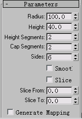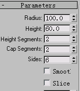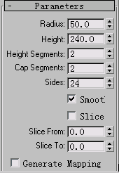 2.在顶视图中创建一个圆柱体Cylinder01造型。参数如图1所示。