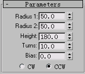 8.下面我们来制作螺纹,在顶视图中创建一螺旋线Helix01,其参数如图7所示。