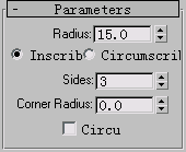 9.在前视图中创建一多边形NGon01,其参数如图8所示。