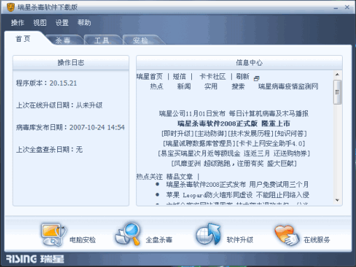 | · 瑞星杀毒软件是基于新一代虚拟机脱壳引擎、采用三层主动防御策略开发的新一代信息安全产品!