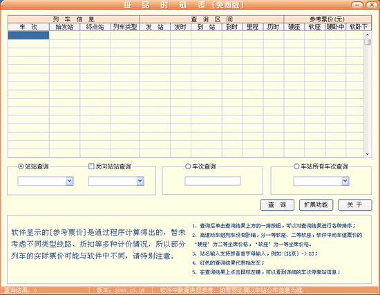 | · 极品时刻表]是一款查询全国列车时刻表的单机版免费软件,它的运行不需要网络支持,并具有以下特点: