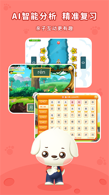 3、亲子互动便捷:为家长提供参与孩子学习的渠道,家长可通过朗读故事等方式陪伴孩子学习,在帮助孩子识字的同时增进亲子间的交流与情感联结。