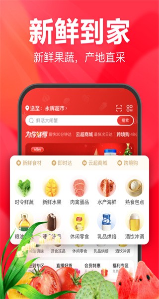 2.集优选水果、时令鲜蔬、禽蛋肉鱼等数十种商品分类,海量商品任您挑选。