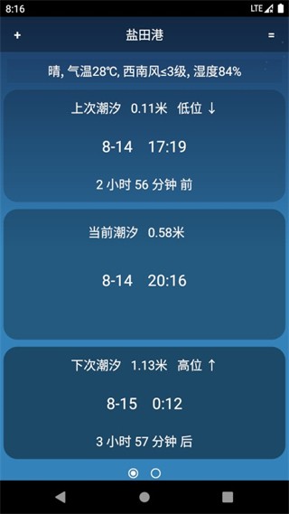 4、选择完成后,即可查看该地点的潮汐信息,包括潮高和潮汐变化曲线等。