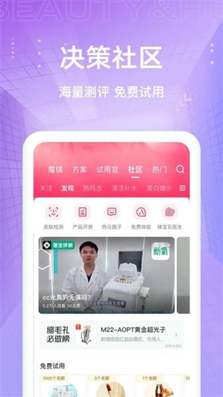 从皮肤测试了解问题、医美百科学习知识,到视频导诊获取方案、筛选机构预约服务,全程在线完成,无需切换多个平台,大幅提升医美服务获取效率。