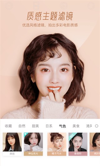 智能美颜,大眼瘦脸,一键磨皮,让你每一张自拍都好看,清新甜蜜高冷,滤镜风格百变!