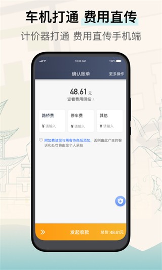 5.车机打通,费用直传:计价器打通费用直传手机端。