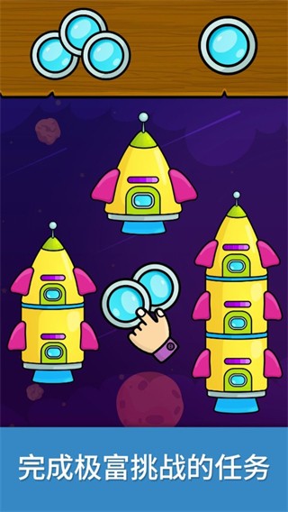 3、在任务界面,通过翻开星星图案,查找隐藏的火箭完成任务。