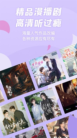 海量人气作品改编的漫播剧、有声书,各种资源应有尽有,超清音质带给你畅爽收听体验!