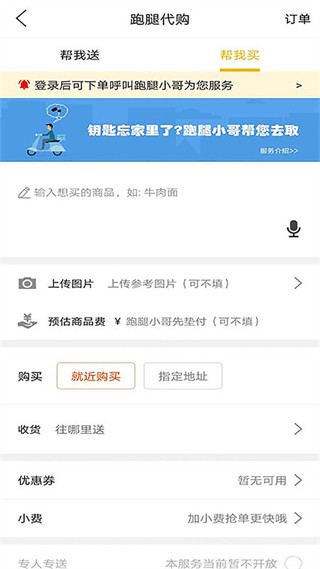 聚焦跑腿、外卖两大特色服务,精准匹配居民紧急代办、餐饮配送等个性化需求,无论是文件传递还是美食速递,都能快速响应,解决生活中的各类急事难事。