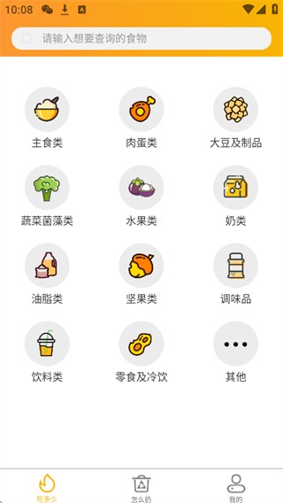 1、可按主食类、肉蛋类等分类查询各类食物信息,帮助了解食物相关内容。