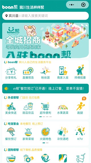 1、进入boan帮后,点击美食快送选项,可进入美食分类页面。