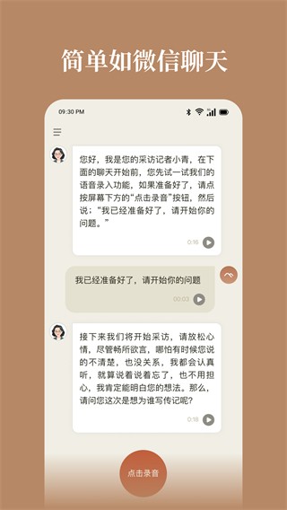 采用无压力的异步聊天式访谈,用户可完全自主掌控对话节奏,随时开始、暂停或修改回答,让讲述过程轻松自然,完美融入日常生活间隙。