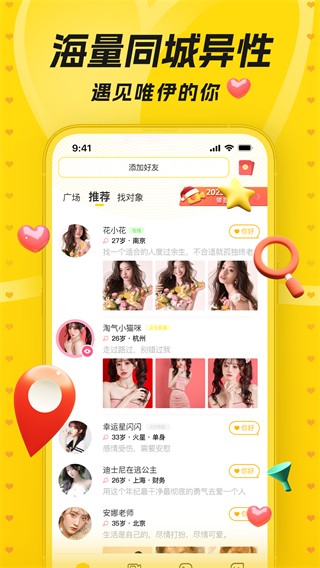 聚焦同城交友场景,每日更新优质异性资料,既降低了线下见面的距离成本,又能让用户结识身边的缘分,为同城恋爱提供更多可能,拓宽社交边界。
