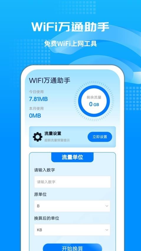 首页可以看到今日使用流量,提供了流量换算工具。