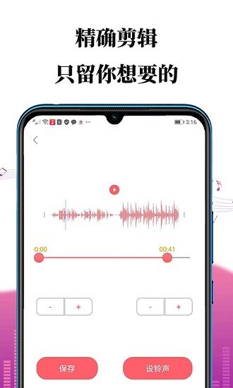 支持本地音乐导入,自由裁剪喜欢的片段作为铃声。