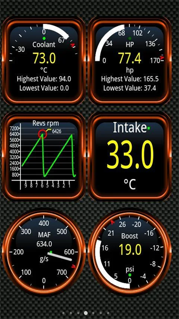 实时监测并显示车况数据,并可自定义.显示监测数据内容;
