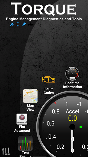 打开在本站下载的Torque车况大师,点击进入首页,我们可以看到有很多功能,如车辆故障、实时信息、地图视图、图标等等