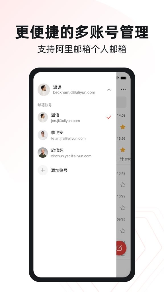 支持多账号一键切换管理,满足用户同时处理多个邮箱的需求。