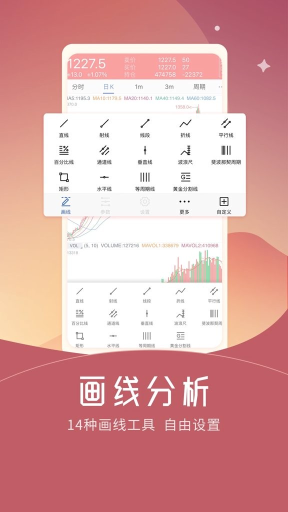 内置专业K线图和技术分析工具,辅助交易决策