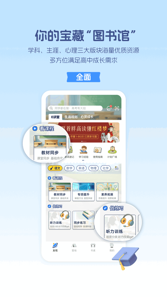 高中学习确实很累,但有些人即使花时间也学不好。这时,升学e网通是个好帮手。它包含数学、英语、物理、化学、生物、政治、地理、历史等科目,提供统编版、人教版等多种电子教材,支持在线学习。无论哪科遇到困难,都能在这里找到需要的知识。