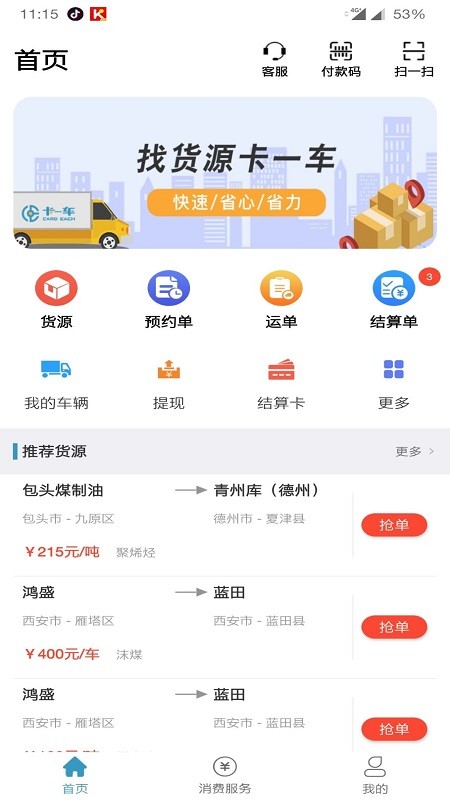 卡一车app官方版是一款专注于智慧物流服务的综合性手机应用平台。该软件以互联网技术为核心,深度融合煤炭行业需求与供应链管理,致力于为用户打造高效便捷的物流解决方案。通过整合行业优质资源,构建智能化物流服务平台,不仅为大宗商品运输提供专业支持,更为推动中国清洁能源产业发展贡献力量。