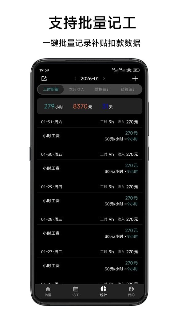数据明细:提供详细的工时和薪资记录,方便用户随时查看和核对。