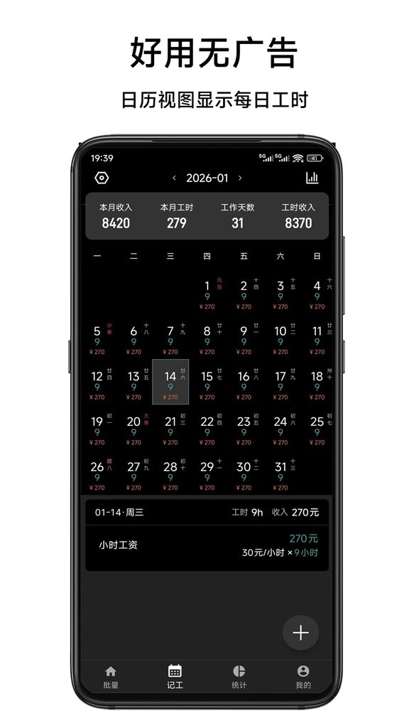 只需输入时薪、选择工作时长,5秒即可算出当日工资,数据自动保存至手机,随时核对,再也不怕被克扣薪资!