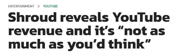 据dexerto报道,近日,前《CSGO》职业选手、知名内容创作者Shroud在直播时透露了自己在YouTube平台的收入情况,并坦言这笔收入“没大家想的那么多”。