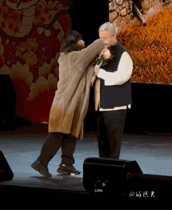 而就在赵本山上台讲话时,一位头披长发的粉丝上台送花,接近赵本山后就强吻 让赵本山措手不及。随后站在一旁的程野看出来了这位粉丝是宋小宝装扮的,就将假发拽了下来,引得观众哄堂大笑。虽然是故意安排的段子,但是轻松的氛围让观众们感到亲切。