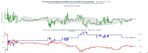 套利2:押注特朗普当选,并用「民主党赢得普选票+赢得总统职位」进行对冲