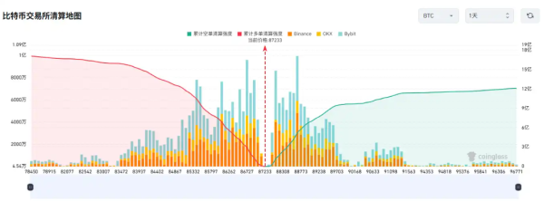 12月17日,据Coinglass数据,若比特币突破8.9万美元,主流CEX累计空单清算强度将达7.02亿。