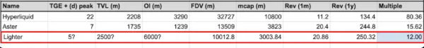 与其他Perp Dex相比,Lighter的估值被低估了。
