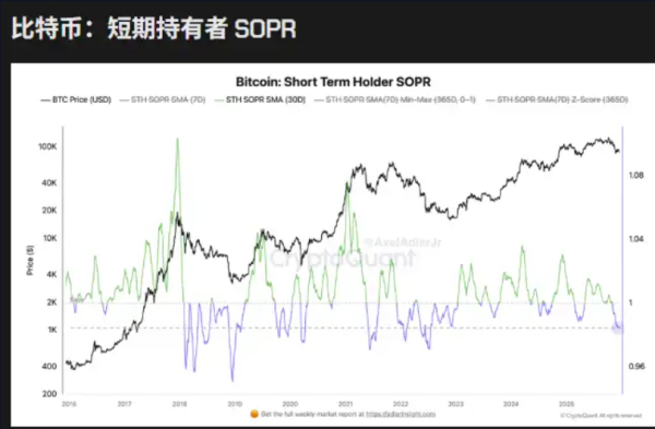 当前市场对短期持仓而言风险规避情绪浓厚。关键反转确认信号:价格回升至STH实际价格之上,且SOPR回升至1以上。