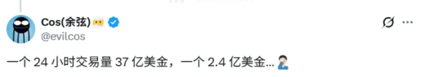 12月18日,慢雾余弦在X平台发文表示,慢雾团队发现两个交易平台的严重漏洞(直接影响资金安全的),联系不到人,公开联系也没反应。余弦同时表示,这两个交易平台一个24小时交易量37亿美元,一个2.4亿美元。