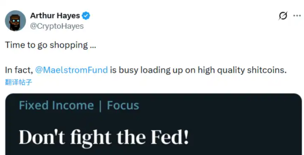 12月19日,BitMEX联合创始人Arthur Hayes于X平台发文表示,其家族投资办公室Maelstrom正在大举抄底高质量山寨币。![]()