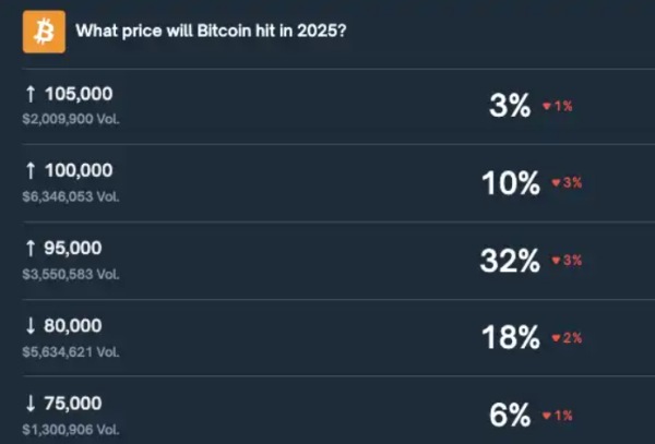 此外,预测其再次涨至9.5万美元概率暂报32%,跌破8万美元暂报18%。(币圈十大交易所)
