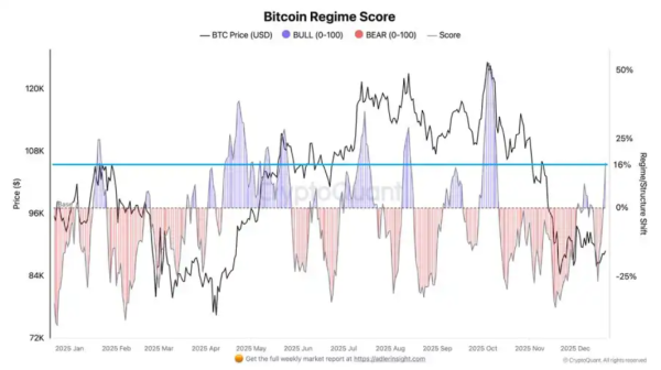 12月22日,CryptoQuant分析师Axel发文表示,比特币正进入圣诞行情窗口期,市场评级指标显示看涨但情绪尚未过热,空头清算进一步加剧了买方占优的市场不对称局面。衍生品市场结构显示,当前比特币期货市场以空头平仓为主,将产生机械性的买盘压力,推动价格上涨,市场进入「牛市中性」(bullish neutrality)状态,预期回报积极。