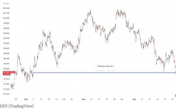 美国美元指数(DXY)周二再次走低,交易价格距离其2025年低点不远。