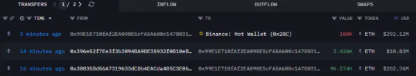 12月24日,据Onchain Lens监测,「BTC OG内幕巨鲸」3分钟前已向Binance存入100,000枚ETH,价值2.9212亿美元。(炒币正规吗)