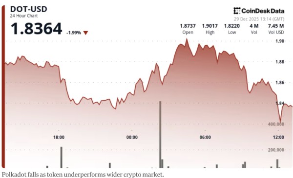 随着整体加密市场仅小幅下跌,DOT 下跌 2%,至 1.84 美元。
