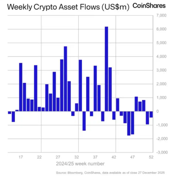 12月29日(哪个平台卖币最划算),CoinShares发布最新周报表示,数字资产产品上周资金流出4.46亿美元,使得10月10日之后的总资金流出达到32亿美元,表明市场情绪尚未完全恢复。(哪个平台卖币最划算)